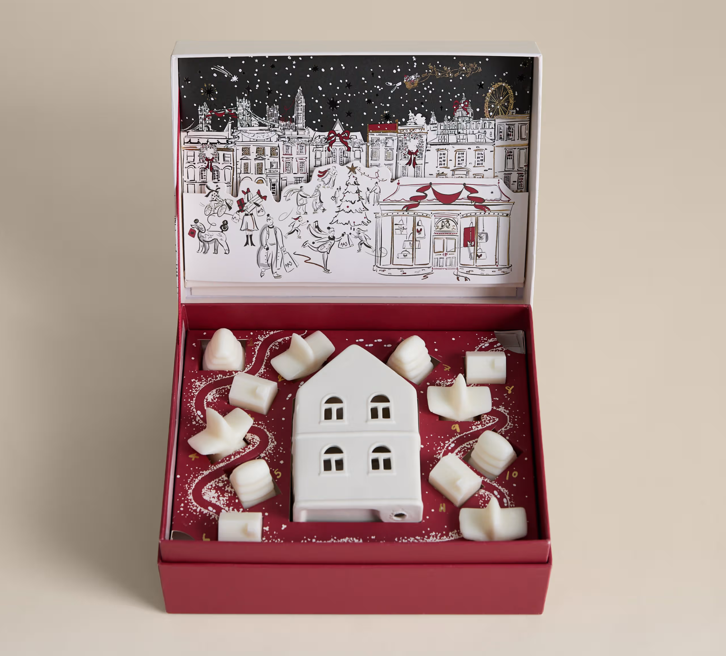 Celebrate the countdown to Christmas with a charming Advent calendar featuring 24 festive wax melts and a townhouse-shaped ceramic burner. Each day reveals a new melt infused with one of three signature seasonal scents, Home for Christmas, Frankincense & Myrrh, or Mandarin, Clove & Cinnamon.